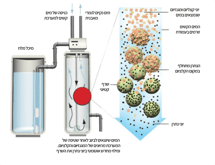 מרכך מים פועל בשיטת החלפת יונים. השיטה היעילה ביותר להסרת אבנית מוחלטת מהמים. המערכת מוציאה את יוני הסידן והמגנזיום (שהם הגורם לאבנית) ומחליפה אותם ביוני נתרן (מלח), וכך היא מספקת מים רכים ונעימים בכל הברזים בבית.